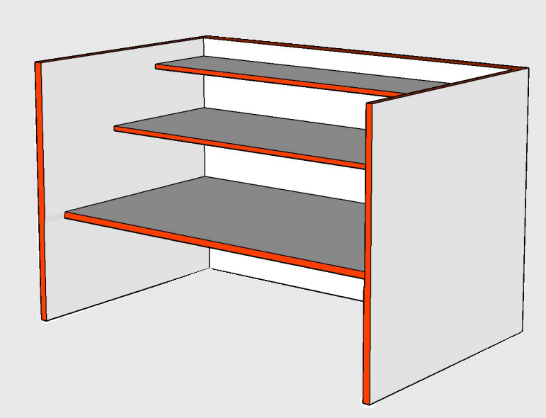 3 étagères profondeur 80cm, 40cm et 20cm, longueur 170cm + 48 cm de sous-bassement