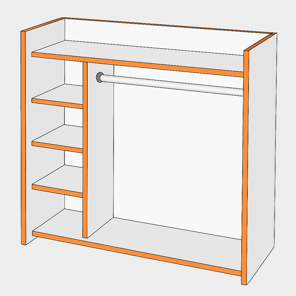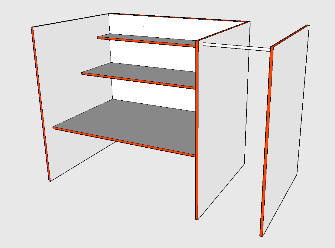 1m50 de penderie et 2 grandes étagères de 1m50 également